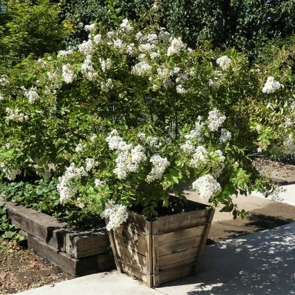 Crape Myrtles are often tree-like, but Acoma is a nice rounded shrub. This means that when it is pruned into a tree form (as it is most often) it has a full head that can be wider than it is tall, giving the shrub a stunning bouquet-of-flowers look. The pure-white crinkled and ruffled flower clusters hang a little lower than other Crapes, to a very romantic effect.