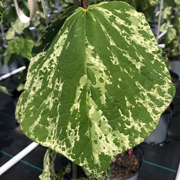 - Mature Leaves Mellow to Marbled Green and White Variegation