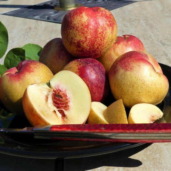 Even when picked while still firm, this medium-sized fruit is still sweet as a perfect summer nectarine should be. The firm flesh means that Arctic Rose keeps longer when picked, stands up to shipping (so you can send some home with your friends and family) and keeps its shape when being baked into scrumptious pies.