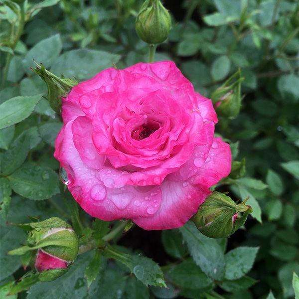 Not only does this lovely rose produce blooms from spring to fall, but its glossy deep green leaves dance in the sunshine.