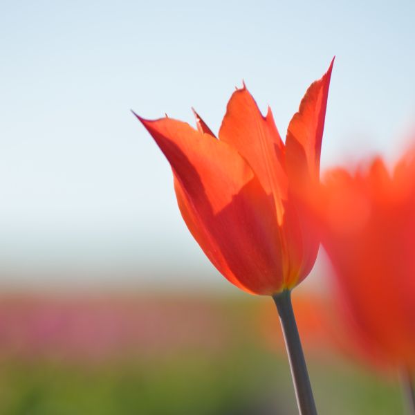 This beauty is a bright and lively orange with petals that taper to points at the end and turn slightly outwards. They grow one to a stem, making them a wonderful choice for cut flowers later in the spring when they bloom.