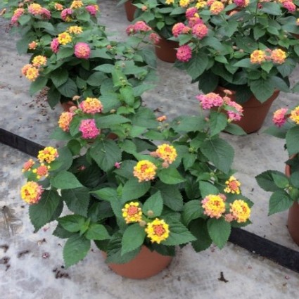 Bandana® Pink Lantana has flowers that start out with a yellow color and mature to rose. Bandana® Pink Lantana is a well branched plants that has a nice mounding growing habit.