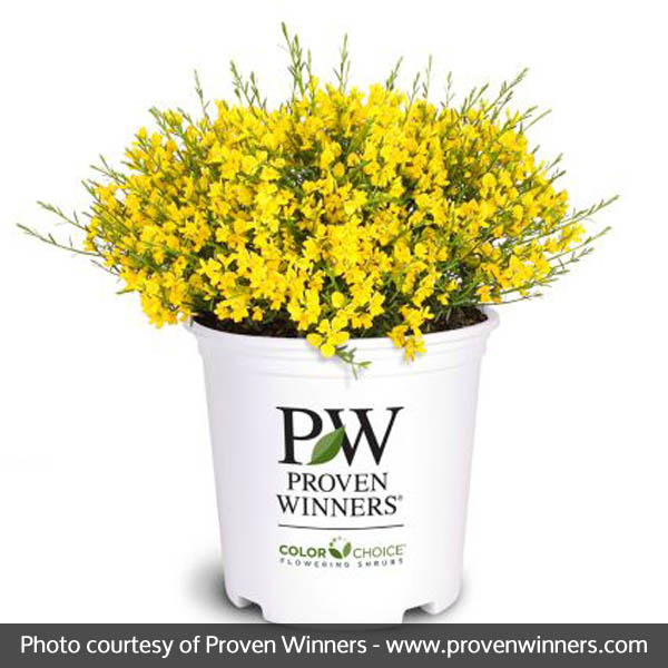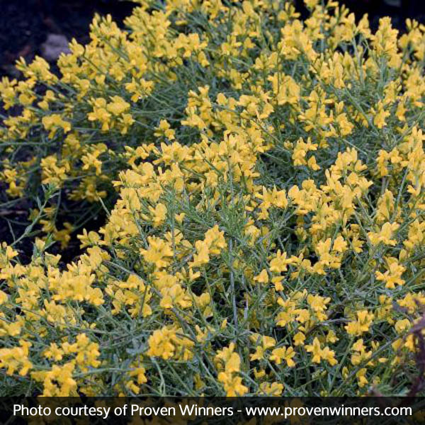 This is a new, more floriferous, and longer blooming selection of Genista. The shocking yellow pea-like flowers come in waves along the branches in early spring.