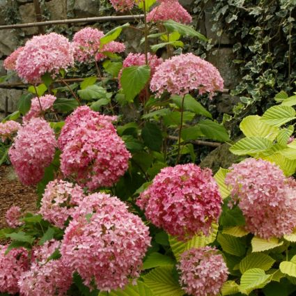 Expect dark green leaves to introduce themselves as spring dawns with bright magenta mop-head blooms in contrast by mid spring. These large clusters are supported by strong stems of old and new wood for densely mounded flowering shrubs that enliven the shadiest spots in your garden.