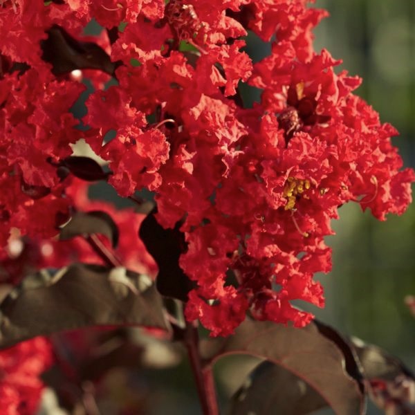 Every garden needs a little drama! The unique look of Best Red Crape Myrtle brings a very dynamic display to the landscape. From early spring through fall, the nearly black foliage sets the stage, and it holds that high impact color all season.