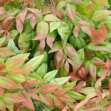 The Blush Pink Nandina stock was developed by Southern Living from the late-great Firepower Nandina. Like the Firepower, this cultivar transforms color beginning in spring and lasting until fall. It goes from spritely green to a medley of corals, pinks, and reds during periods of new growth. Its young leaves light up like embers on the tips of branches and often feature green veins that really set off their ravishing hues. At the height of its new growth, the Blush Pink Nandina looks perfectly sunkissed and cheerfully aglow.