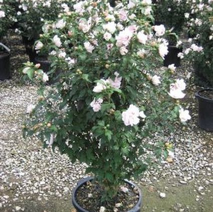 Blushing Bride is an exceptional variety of the ornamental shrub, Rose of Sharon. This shrub’s ability to be easily shaped makes it a prime candidate for hedge or border plantings. It would also make a striking accent in your front yard where it’s sure to draw the eye of friends and neighbors.