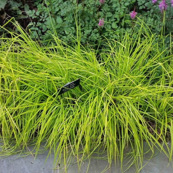 Bowles Golden Sedge Grass, Carex elata ‘Bowles Golden’, has dazzling bright gold foliage with narrow green margins that make Carex ‘Bowles Golden’ really stand out in the garden.