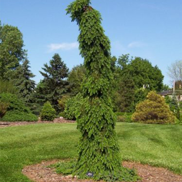 Bruns Weeping Serbian Spruce easily captures an adoring audience of raving fans. People adore these spire-like trees with their freeform, whimsical branches hugging a strong central leader.