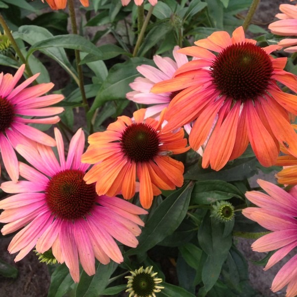 Only one, though, comes in a rainbow of colors on one flower! Butterfly Rainbow Marcella Echinacea comes in mouthwatering sherbet colors. It starts off a sassy tangerine dream and ages from the center out to a blushing raspberry-royale. The two-toned effect of the orange and pink together is luscious.