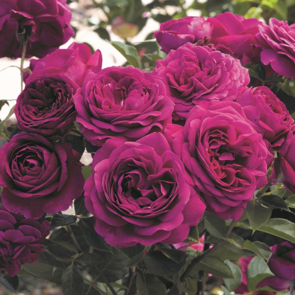 A marvelous achievement of modern rose hybridization, the deep plum blooms will inspire you every time you study it. The flowers are quartered, old-fashioned and cuppy. Fragrance is mildly fruity.