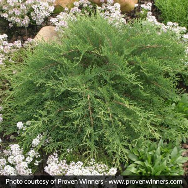 If you are looking for a small evergreen with all season color, this is the plant for you! This matures only a couple feet high but can cover a large area with it’s airy, graceful branches.