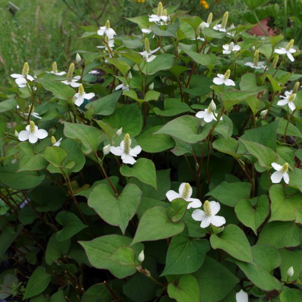 Use Houttuynia ‘Chameleon plant’ as a groundcover, in rock gardens, with water plants, as a houseplant, or in scented gardens.