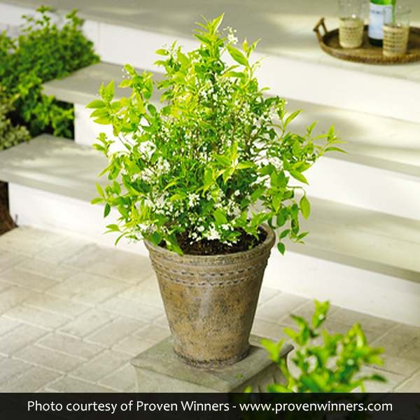 Show off your style with a series of exterior containers planted with Chardonnay Pearls. If your pot is large enough, this compact shrub can be used as a gorgeous “Filler” plant.