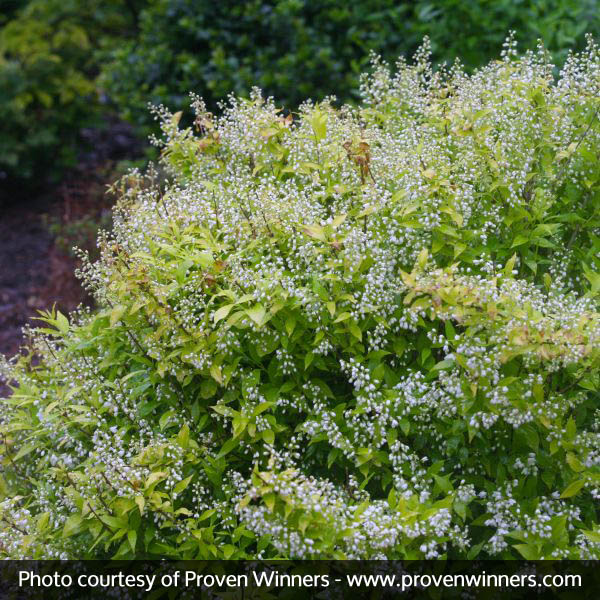 Rely on the colorful dwarf shrub Chardonnay Pearls® Deutzia, (Deutzia gracilis ‘Duncan’) in every planting bed to easily tie the entire design together. These bright landscape plants have been field-tested by the Proven Winners® team for years. They are easy-growing, and highly ornamental.