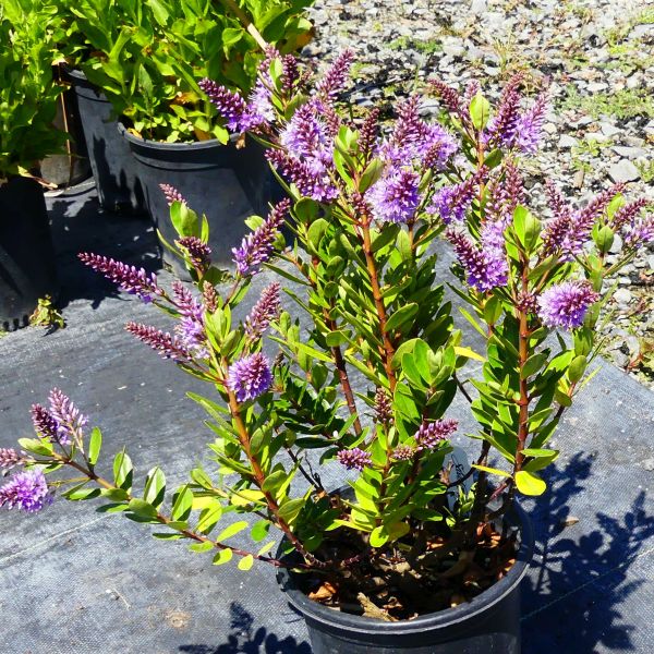 ebe, sometimes called Veronica, is a lovely plant that slowly grows to its max height. In warm zones 8-10, it is a hardy evergreen that forms a fantastic shrub border or edging. In all other climates, it is a welcoming annual that does great in containers and patio pots. The leaves are a rich green that makes a perfect backdrop for the lavender-pink candle-like flowers that cover the bush from late summer through the fall. The stems of Coed are a sweet treat, too. They are maroon/burgundy color that makes them really stand out.