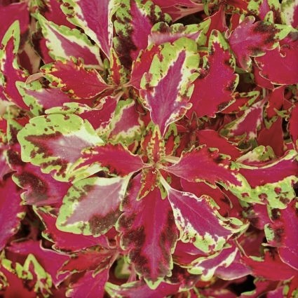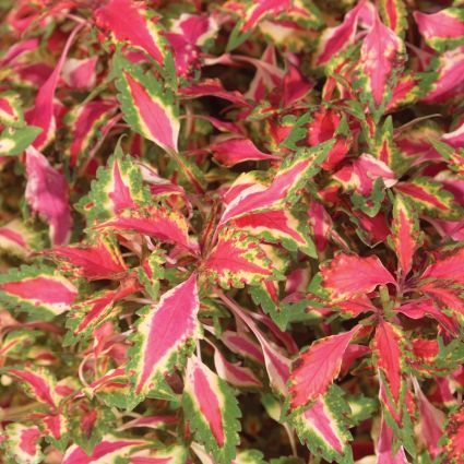 Why settle for simple when you can have Chaos? Pink Chaos Coleus is here to shake up your shady garden beds and pots with an eye-catching crash of color on every plant. With its wild fusion of pure white, hot pink and mint green splotches on every leaf, Chaos isn’t a plant to ‘blend in’…it stands out. You have been warned.