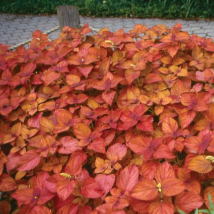 The Coleus Sedona, ‘Coleus hybrid’, has very unique russet colored foliage. These new, bigger, sun loving varieties have revolutionized contanier gardening. The brilliant colors explode in sunny locations.