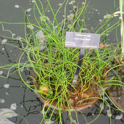Corkscrew Rush is deer resistant and spreads by rhizomes to make neat little colonies beside your water features.