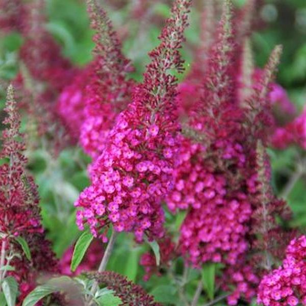 This striking plant produces cone-shaped clusters of red and violet flowers that bob and dance in the wind from summertime into fall. Its bright raspberry reds earn the CranRazz Butterfly Bush its juicy namesake.