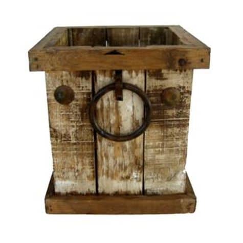 | size | Distressed Wood Short Square Brown Planter With Liner – Garden Center Item |
