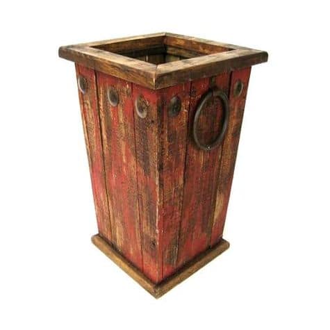 | size | Distressed Wood Tall Square Red Planter With Liner – Garden Center Item |