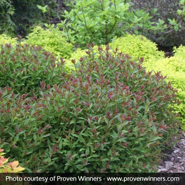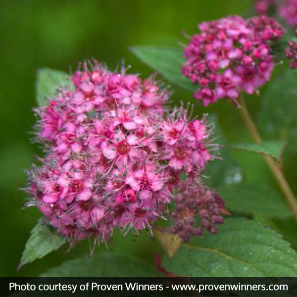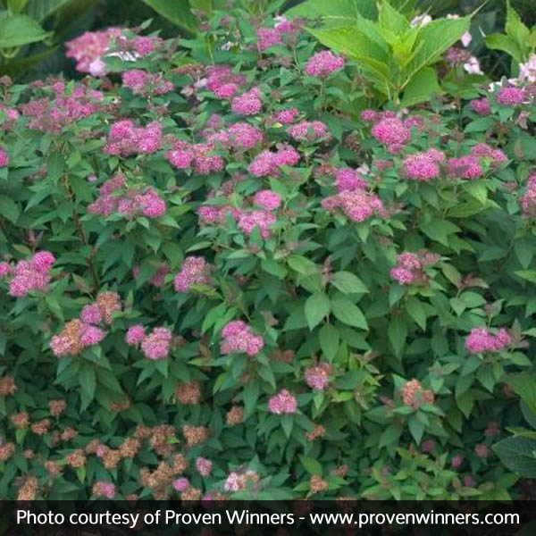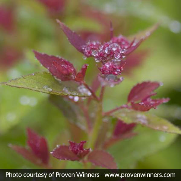 Double Play® Artisan Spirea emerges a rich purple red in the spring, and then eventually matures to a blue-green with pure pink flowers.