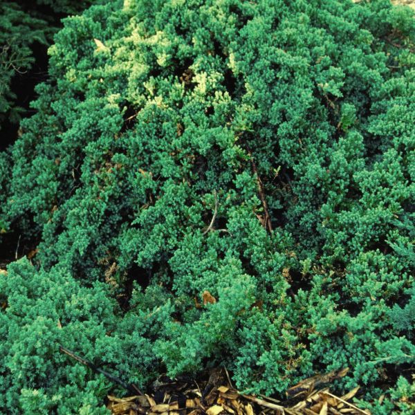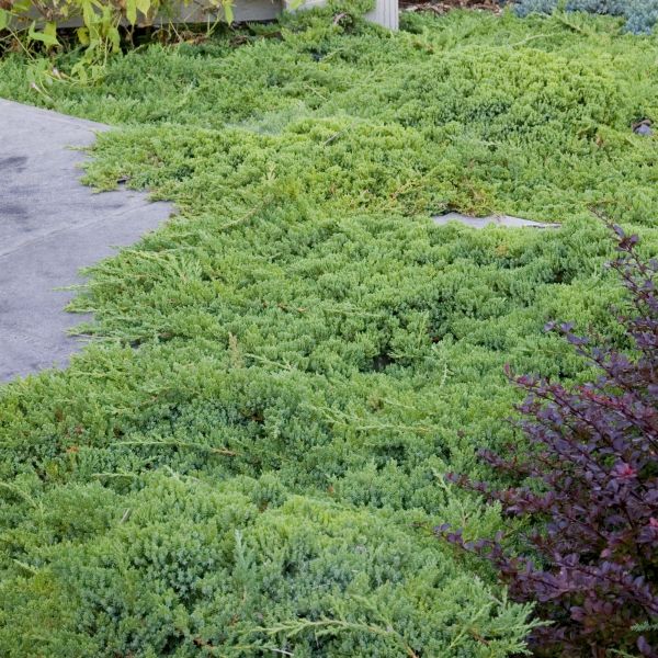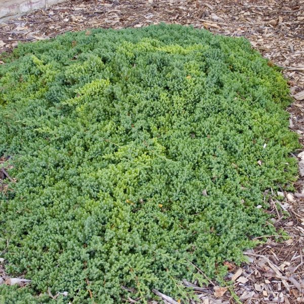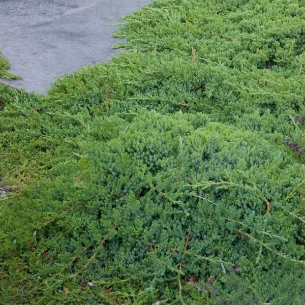 The Japanese Garden Juniper has short needles and exhibits leisurely growth, both in height and spread. In other words, it takes its own sweet time to grow. This is not the ground cover for a “quick fill”. It is the perfect groundcover if you want a classic soft shrub that will stay in bounds and stay green all year, even in the harshest winters.