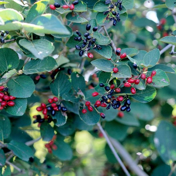 Watch as bright red berries develop from the blooms in late summer. As the nights start cooling down, they’ll mature to black in fall in a lovely show.