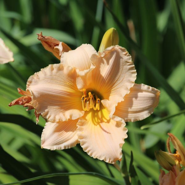 Blooming in midsummer, Hemerocallis are members of the Lily family and the blossoms usually only last one day, but these clump forming plants, with their gracefully arching strap-shaped leaves, produce enormous numbers of flowers throughout the summer.