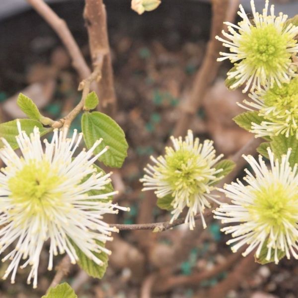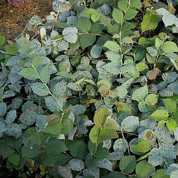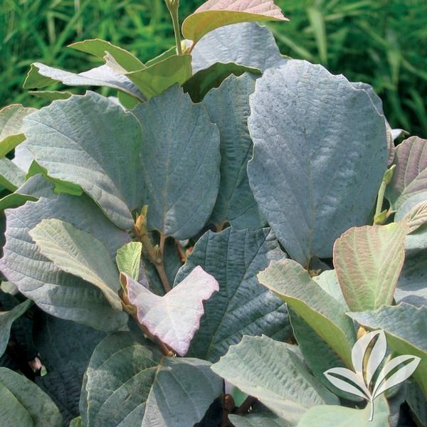 The Fothergilla ‘Blue Shadow, Fothergilla major ‘Blue Shadow’, displays bottlebrush-like ivory white flowers that are 1 to 2″ long, honey scented, and appear in feather like filaments at the ends of the branches in April-May. The summer foliage is an icy bluish-green. An outstanding fall show of rich yellow, red and orange lasts several weeks, usually coming on in late October to November. Blue Shadow is a medium-size deciduous shrub 5 to 6′ high and wide and easily adapts to sun or partial shade. It is tolerant to a wide range of soil and environmental conditions, needs little pruning and has no major disease or insect problems. This exciting new introduction originated as a branch sport from Fothergilla major ‘Mt. Airy’ and is blessed with the same vigorous constitution and well-structured habit.