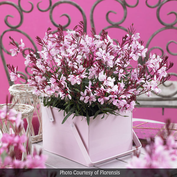 Here’s a pretty perennial to brighten you your garden. Not often will you see such darling colors on a single plant. Gaudi™ Pink Wand Flower (Gaura lindheimeri ‘Gaudi Pink’) feels like it may have a touch of magic in its lovely upright stems.