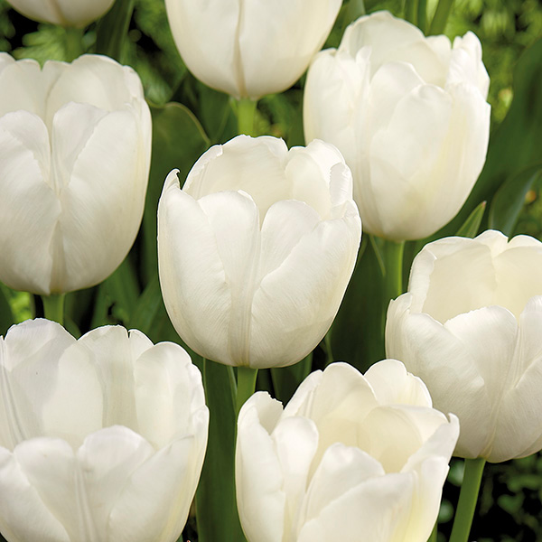 The Hakuun Tulip (Tulipa ‘Hakuun’) may as well be the bride of the garden. This pure white Darwin Hybrid glows with elegance and charm. With its porcelain white coloration, the Hakuun Tulip is dressed to impress and ready to walk down the aisle. In fact, this stunning and large tulip variety often does find itself walking down the aisle with some lucky brides… in their bouquets, that is. And brides love to say “I do” to the Hakuun Tulip’s subtle and charming frill along their petal-edges.
