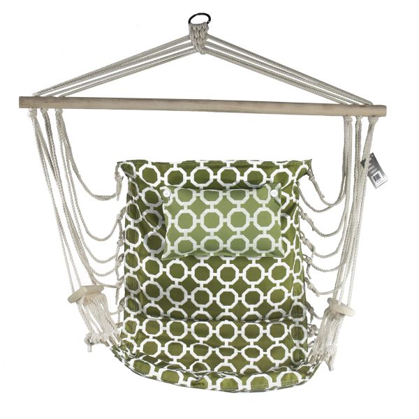 Hanging Hammock Chair With Pillow Green With White Rings – Garden Center Item