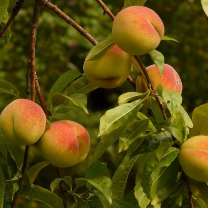 Your Harken Peach Tree is best known for the superior quality of peach it produces mid-season. Each delightfully fuzzy, large peach has a bright red, yellow-mottled skin.