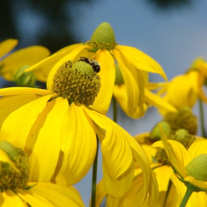 The Black-eyed Susan ‘Herbstonne’, Rudbeckia ‘Herbstonne’, is a summer blooming perennial with a unique green cone that is surrounded by yellow petals; this giant is the tallest of the Rudbeckia and will grow to impressive heights!