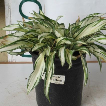 Hosta Fireworks, Hosta ‘Fireworks’ (PP#16,062), is a dwarf, narrow margined, small sport of Hosta ‘Loyalist’. It has very unique, upright foliage!