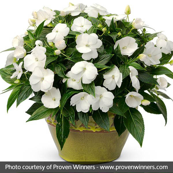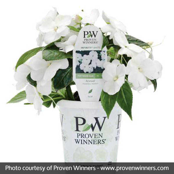 The Impatiens Infinity™ White, ‘New Guinea Impatien’, displays beautiful pure white flowers. This Proven Winner plant comes from the renowned breeder Ludwig Kientzler.