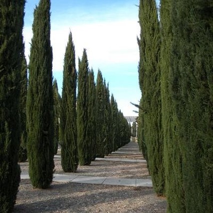 If you want to include a spectacular focal point in your landscape, go with the classic Italian Cypress (Cupressus sempervirens). These Mediterranean Cypress trees instantly bring to mind the Tuscan landscape, and the romantic pace of gracious living.