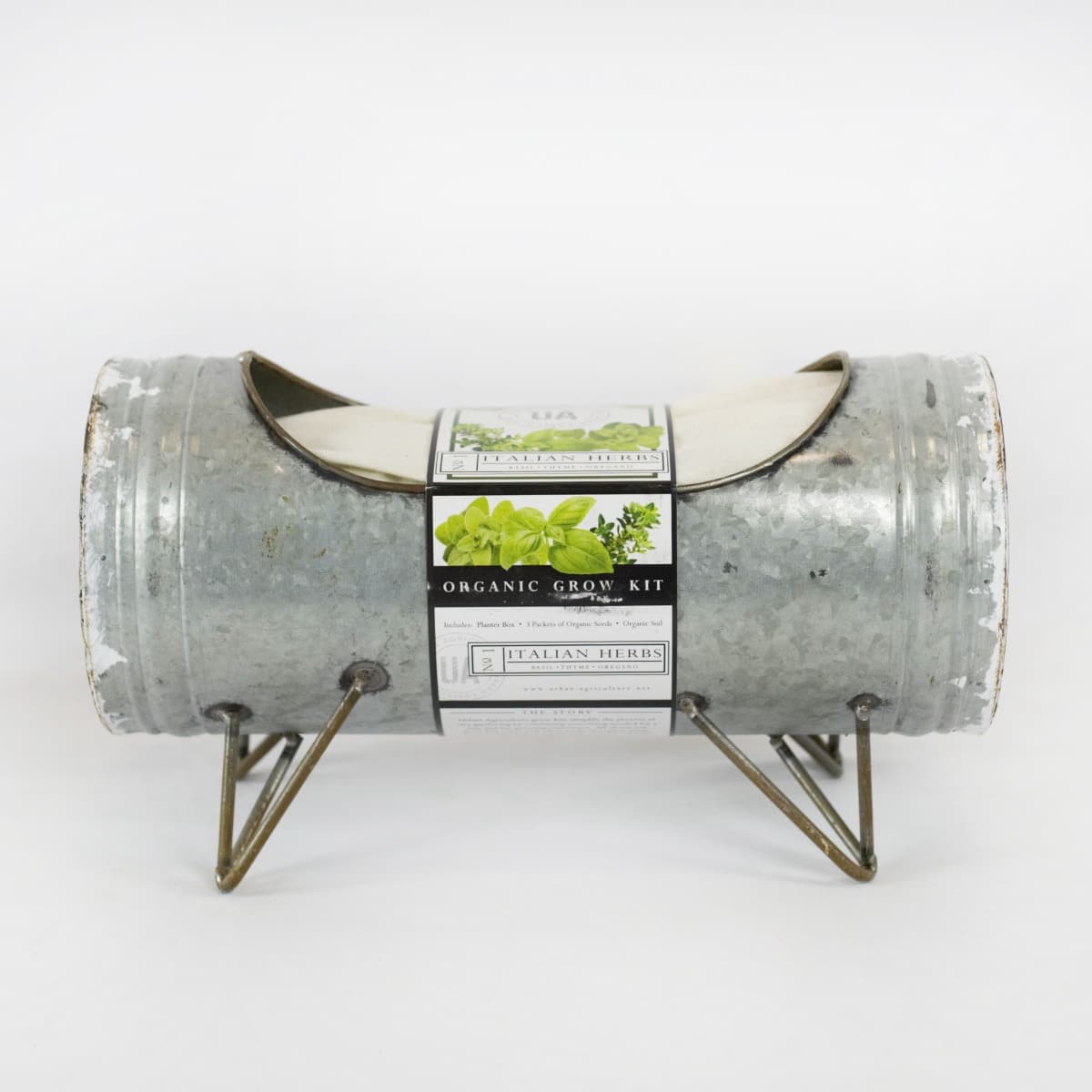 The kit includes a chic urban repurposed metal container and three packs of organic seeds for the most-used herbs in Italian cooking – basil, thyme and oregano. It comes with a pre-measured bag of organic soil, too, so all you have to do is fill the container with the soil, plant the seeds and water regularly! It’s so easy – even if you don’t have a green thumb!