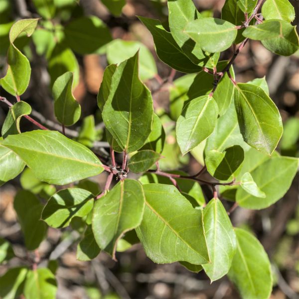 Beautiful glossy green leaves grow pointing up, which gives this Mediterranean native a unique charm. It produces dark, coffee-colored berries which are loved by your local bird populations.