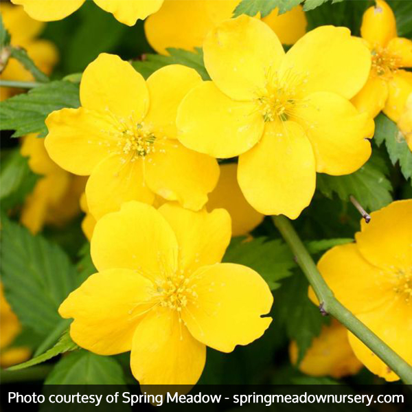Kerria japonica ‘Golden Guinea’ can be used as an accent plant, en masses, as a hedge, as a privacy barrier, or in a small space. Easily grown in average garden soils making it an easy-going shrub that is widely adaptable. Order one today and bring some brightness into your garden!
