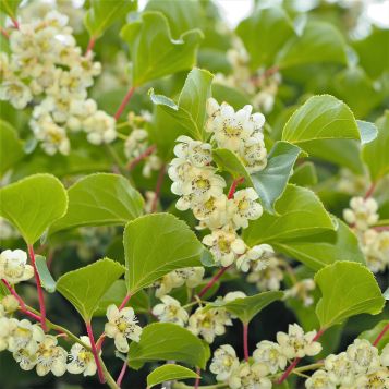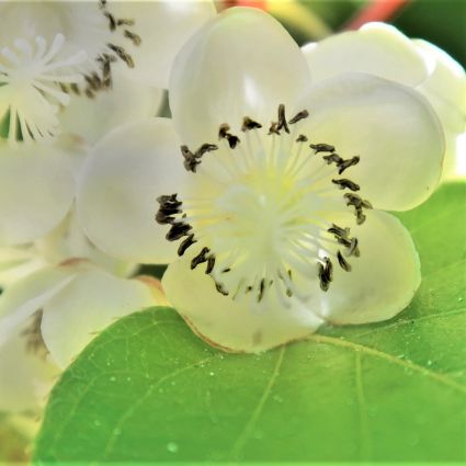 This plant comes alive with unique white flowers in the late spring and early summer. The Kiwi Magic™ Hardy Kiwi Combination’s genus was named for its lovely radiating style of flowers. These petite flowers have six simple petals with a center speckled with black.