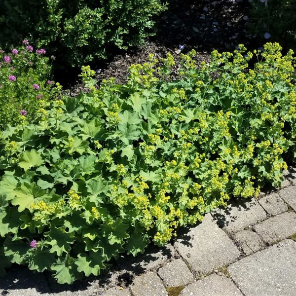 The foliage catches and holds water drops while sparkling in the sun. ‘Lady’s Mantle’ will grow well in sun or shade in rich, moist, well-drained areas.