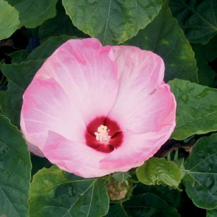 Hibiscus Luna Pink Swirl, Hibiscus moscheutos ‘Luna Pink Swirl’, is a compact variety with a very full and bushy habit. Bring a touch of the tropics home with this new color in the Luna series of Hardy Hibiscus.