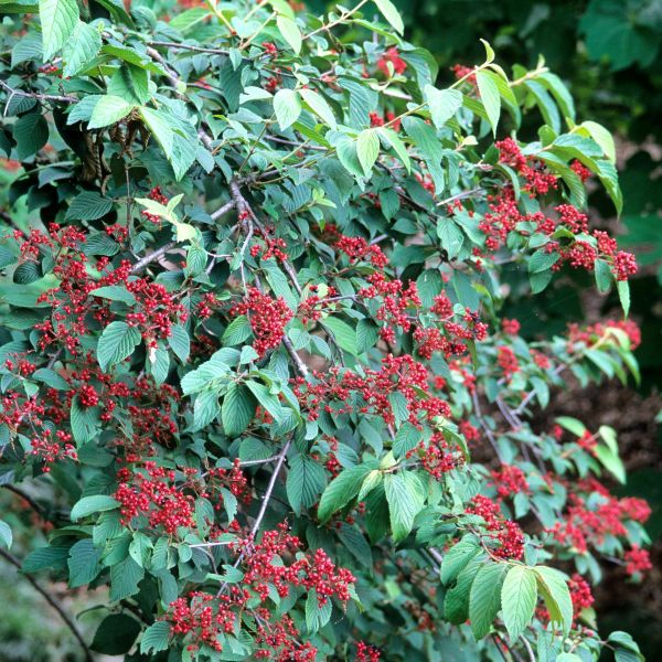 Eye-catching red fruits develop from the white flowers. Songbirds will enjoy them as a nutrient-rich resource food before winter.