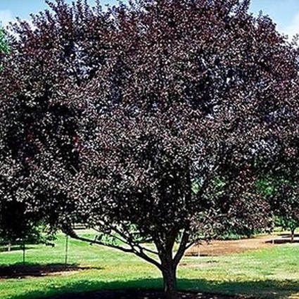 The bold color really draws the eye as a stand out against the typical ho-hum hues of summer foliage. The Newport Plum forms a dense rounded canopy, which makes a pleasing silhouette in the landscape.