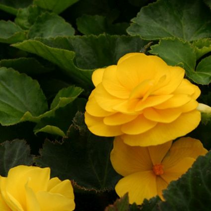 The Begonia Nonstop Mocca Yellow, Begonia tuberhybrida ‘Mocca Yellow’, adds a sizzle of color to that part shade to shade location in your garden. The large, full, double yellow flowers of Nonstop® Mocca Yellow makes a real statement in your patio planters all summer long.
