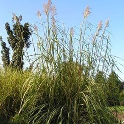 The Grass ‘Northern Pampas Grass’, Erianthus ravennae, is an outstanding, extra large grass. The tall flower stalks of this grass stand well above the foliage. It reaches amazing heights in your garden!
