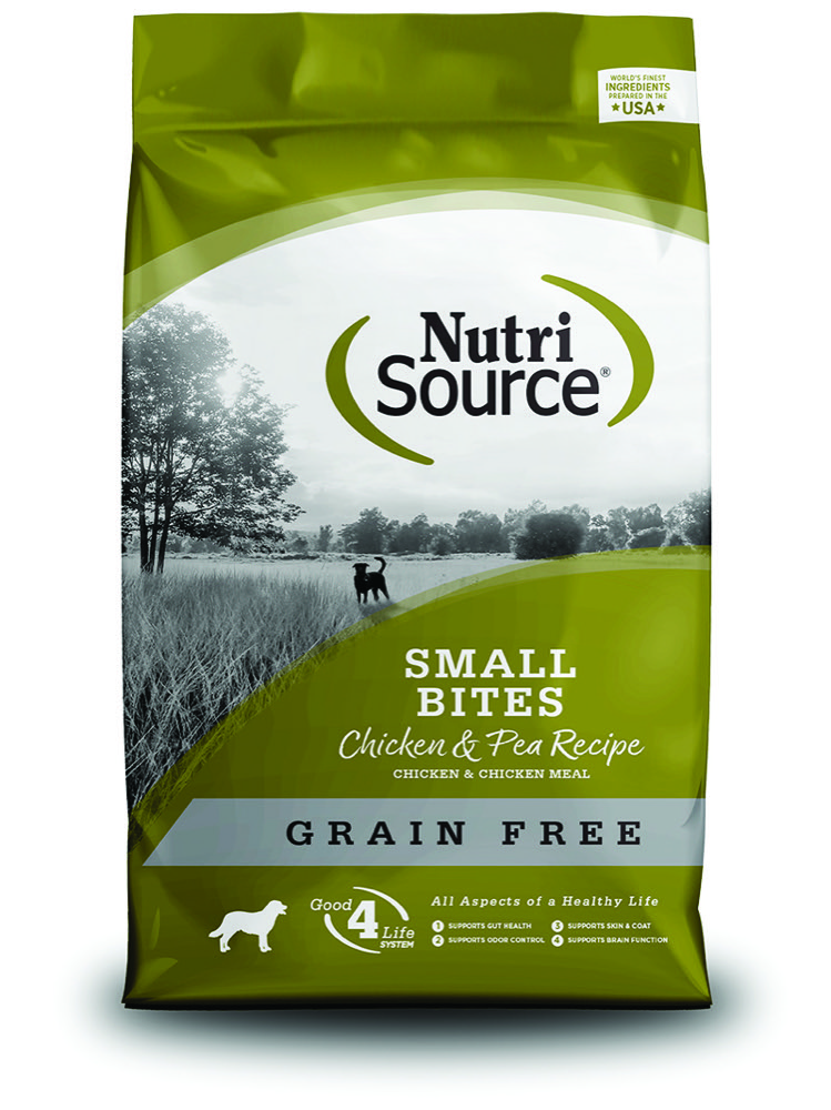 NUTRI SOURCE 29501 15 # GRAIN FREE SMALL BITES CHICKEN / PEAS DOG FOOD MP70